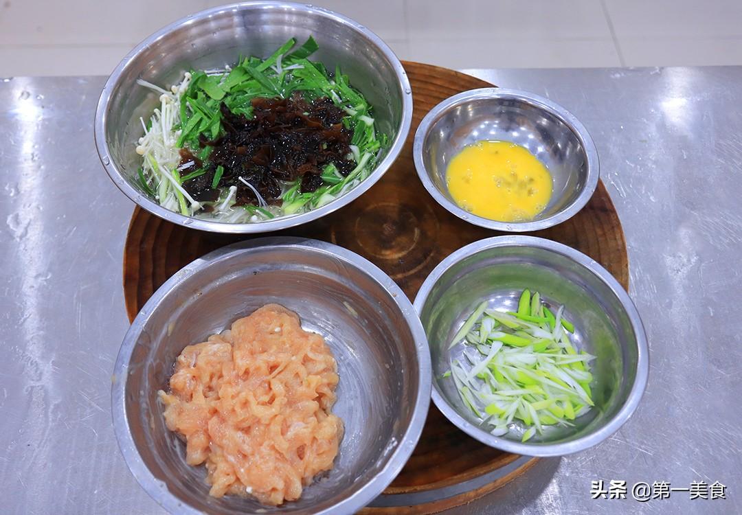 盆中放入适量的食盐、鸡粉、胡椒粉、料酒,用手搅拌摔打给肉馅上劲,倒入葱姜水继续搅拌,这个搅拌过程要5分钟,利用摩擦拉扯让肉馅充分吸收水分,吸足水分的肉泥口感才会更加滑嫩,加入一个鸡蛋清再次搅拌上劲抓匀,这个过程持续5分钟时间,鸡蛋清低温凝固更容易结团不散,加入一点淀粉锁住肉馅内的水分,再次搅拌5分钟左右放置腌制入味,这个肉馅搅拌不到位的话,肉馅下入锅后浮不起来。