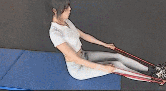 1.将弹力绳把手固定,卧倒,吸气,双脚蹬弹力绳,至极限时呼气,双腿回收至初始位置。