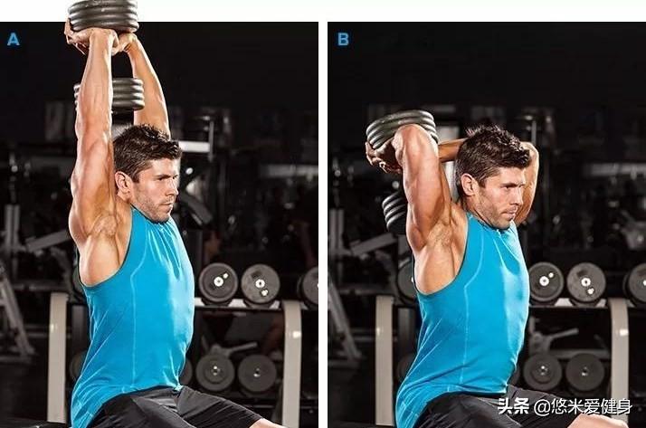 2. 通过哪些动作训练肱三头肌长头?动作1:颈后哑铃臂屈伸