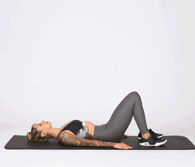 身体仰卧平躺在垫上,屈髋屈膝至大腿和小腿称90度夹角。