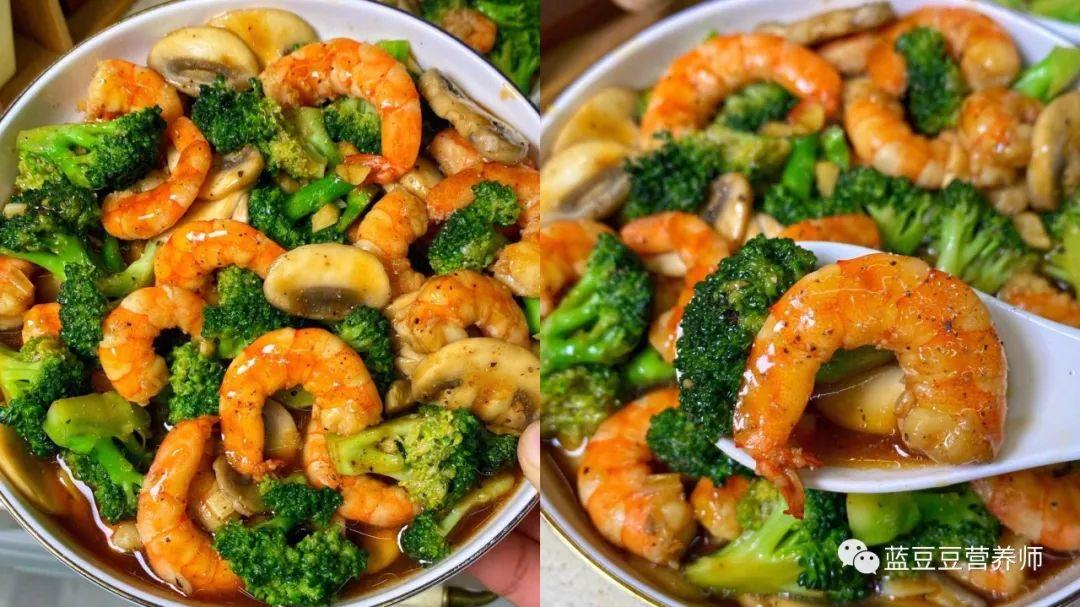 ➌西兰花口蘑炒虾仁