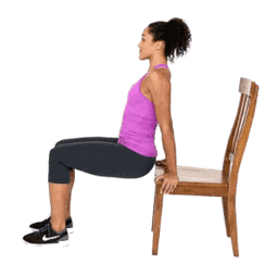 首先找到一个可以支撑的物体,床边,沙发边,凳子均可,然后保持身体背对物体,两手支撑在物体边缘与肩膀同宽(平整坚实的表面,太软容易伤腕),保持腿部弯曲,双脚踏实地面(觉得轻松的可以将腿向前伸直进行),然后收紧核心,保持挺胸姿势,然后身体向下降,让后背尽量贴近物体,保持手肘指向正后方,下降至手肘的夹角小于90度然后稍停,接着手臂发力将身体撑起,在顶峰时不要锁死肘关节,然后再次重复动作。