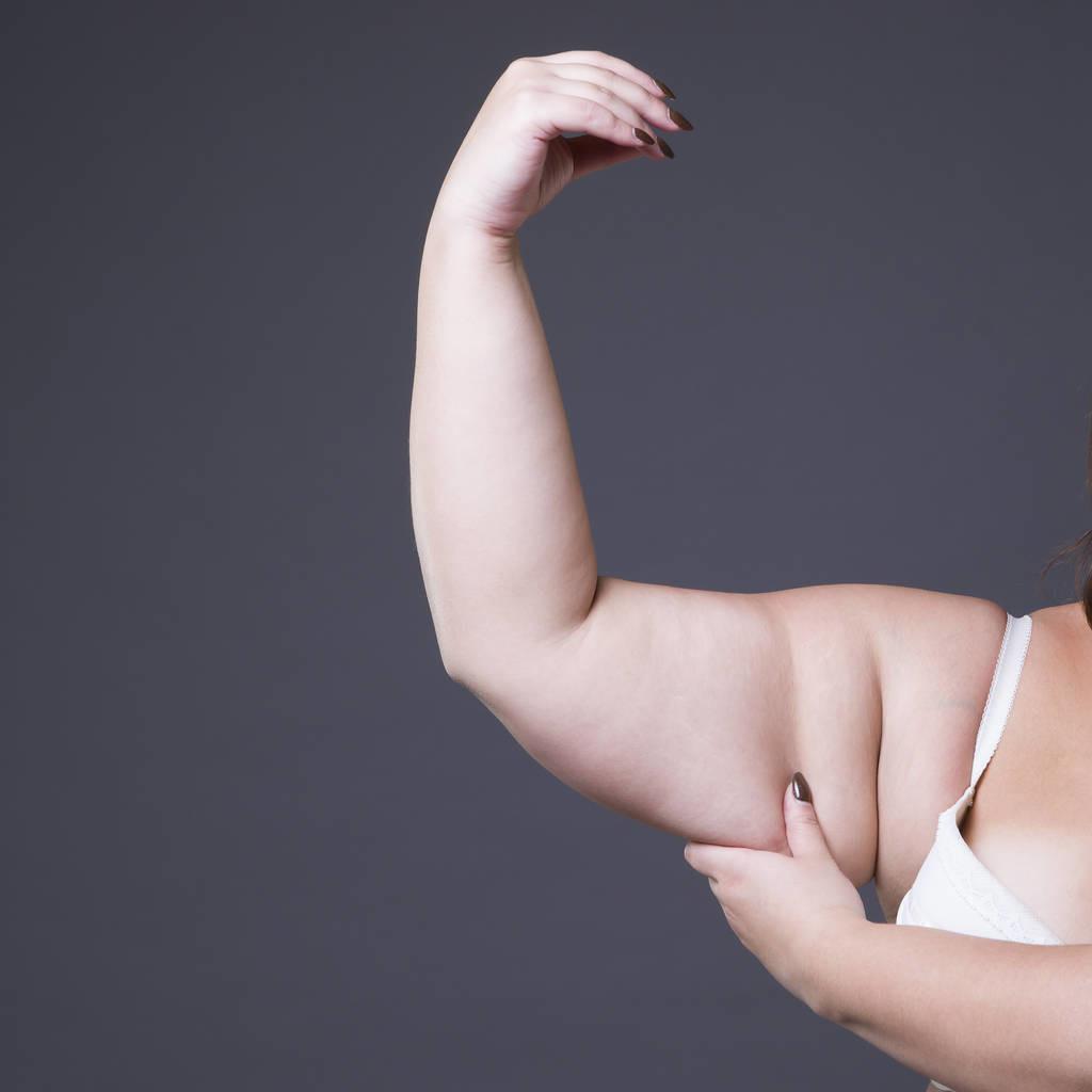 但有时候赘肉堆积的部位也是让人捉摸不透,有时候它会堆积在腰腹,大腿和臀部,有时候也会长到下巴和脸上,大臂也成了重灾区。