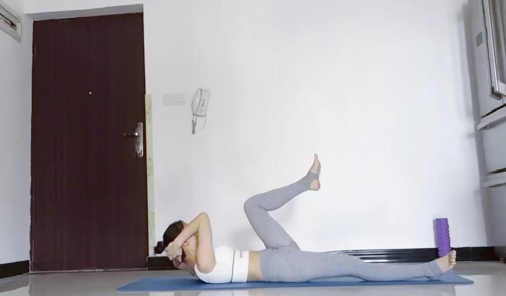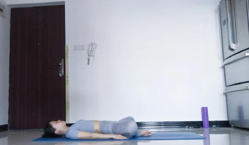 仰卧在瑜伽垫上,屈双腿并拢,双膝向两侧打开再并拢,保持脚掌相对不动,核心收紧,重复3分钟。
