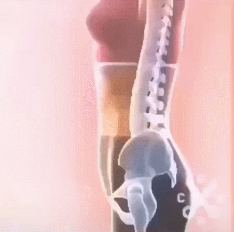 因为我们骨盆里放着大肠和脏器,所以当你骨盆前倾的时候,骶骨就会把脏器的位置向外推,造成下腹凸出的小肚子。