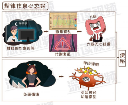 压力过大,或者长期处在焦虑、烦躁等负面情绪中,都会引起神经功能紊乱,搞出便秘。