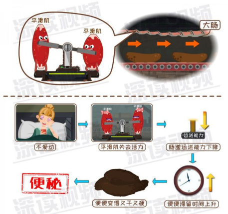 有些喜欢久坐、躺着不爱动的人,搞得我们也失去活力,运送能力直线下降,延长了便便的滞留时间,搞得便便又干又硬,终搞出来便秘。