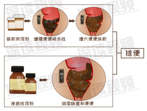 还有像乳果糖、硫酸镁、硫酸钠等渗透性泻剂,它能把水吸引到肠子里来,润湿肠道和便便,减少双方的阻力,让便便顺利排出。