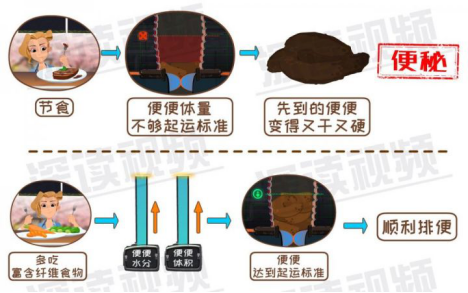 那些先到达的食物残渣被不停地吸水,变得又干又硬很难运输,便秘就来了。