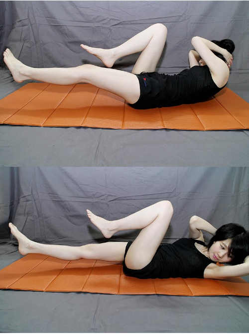 运动2-空中脚踏车:首先平躺后,用手轻轻撑住颈部、上身微微抬起,双腿抬起至空中进行踩踏。弯左脚时,上身侧向左边,反之亦然(就是很自然的摆动)
