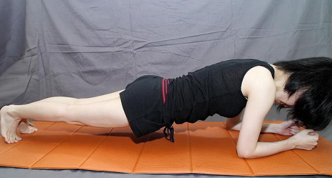 预备动作为,双手肘与肩同宽撑地,肩膀、腹部、屁股夹紧(重要!!),双脚尖撑地