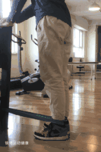 扶墙站立、核心收住,将重心放在一条腿上、对侧腿伸直往后抬约30°,可将手放在臀肌上感受收缩;若这个动作练至无负担时可增加弹力环抗阻。