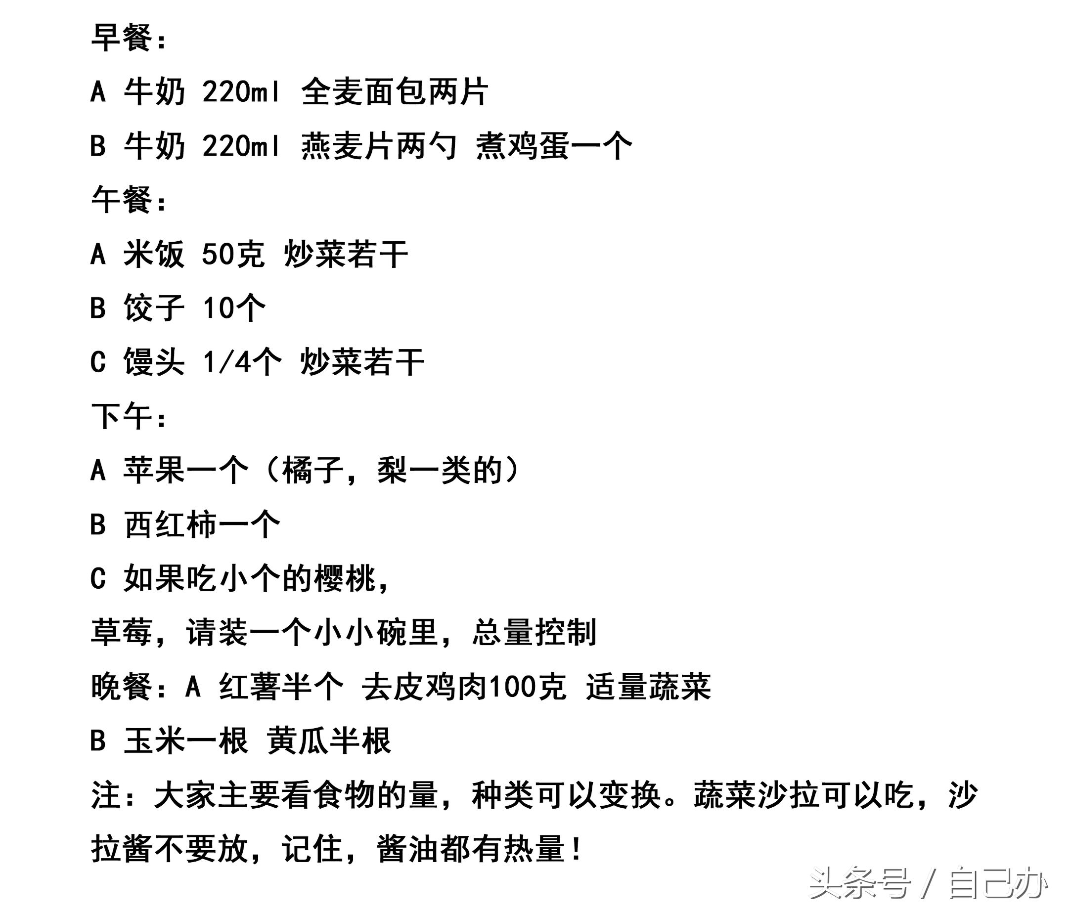 ☆ 找个小本儿,每天记录体重、围度、三餐饮食、运动,先看体重计和皮尺的表现,再决定今天吃什么。