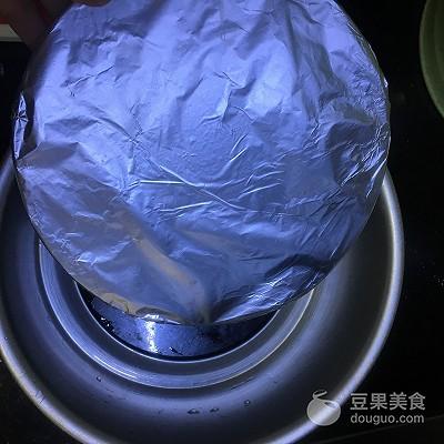5、我用的活底模,方便脱模,地下圆圈反包锡纸,方便取下来。没有活底模的话,用油纸剪个圆底垫起来,或者底部刷点油,不然不好脱模,总不能连模具一起请家人吃。
