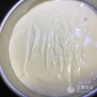 11、倒入模具,在桌面轻轻敲击,震出气泡。放入烤箱,160度20分钟,再调低至140度40分钟。低温烘烤可以防止蛋糕表面开裂。
