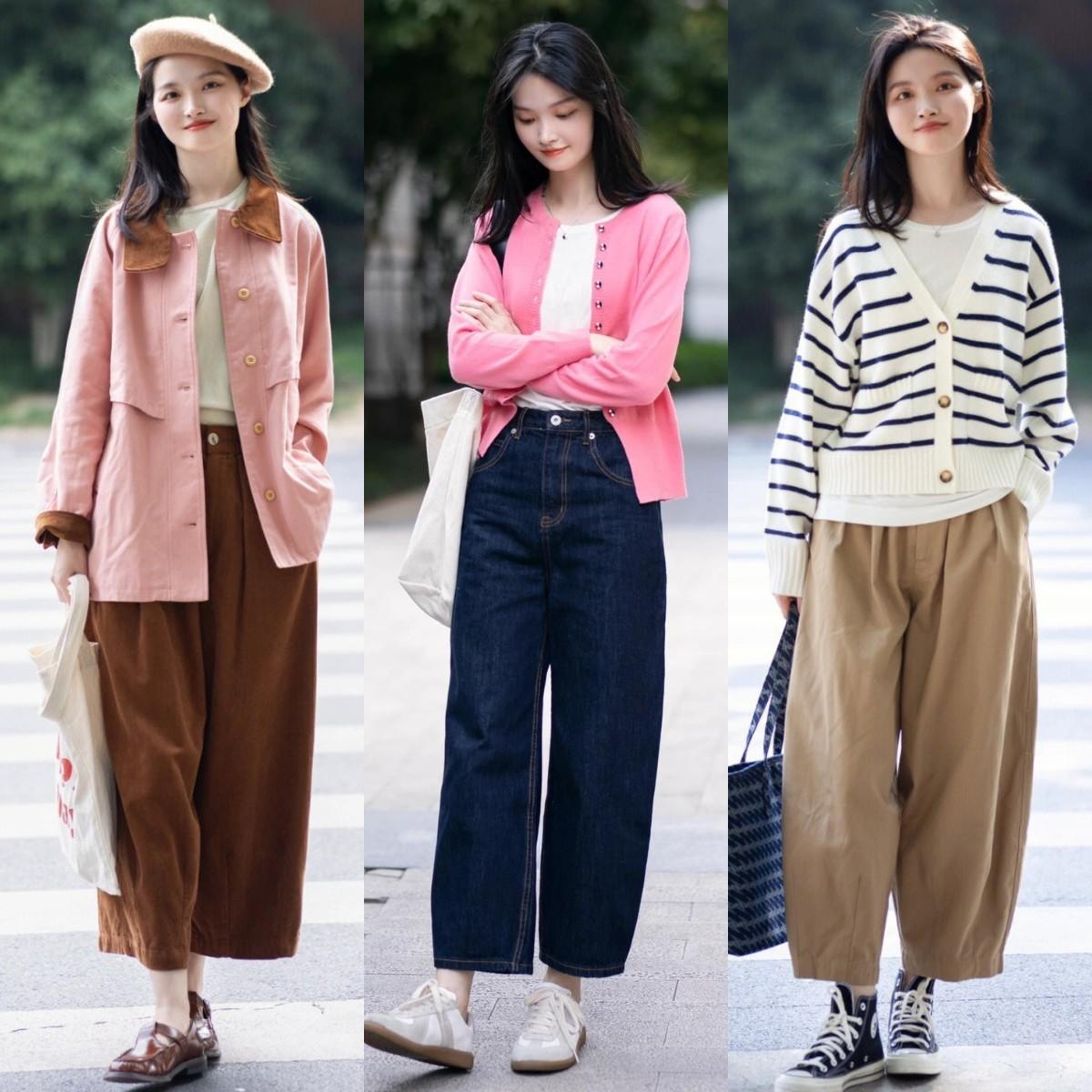 无论是短靴还是帆布鞋,我们在挑选九分裤的时候,都可以入手适配度比较高的款式,比如九分长度的烟管裤,收窄的裤腿在视觉上更显腿瘦。烟管裤适用于腿型不直、胯宽、显腿粗的女性,搭配短靴更显高,搭配低帮帆布鞋更具备减龄果。