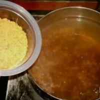5. 然后把红豆薏米汤倒在电高压锅按煮粥键煮30分钟以上。红豆和薏米都比较硬,如果煮得不是很透时间再稍微加长。