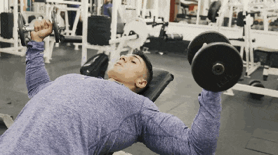 做完两组俯卧撑以后,用轻重量的哑铃做两组上斜飞鸟,每组做15次,这下胸肌已经开始有那种热热的感觉了,然后再进入正式训练!