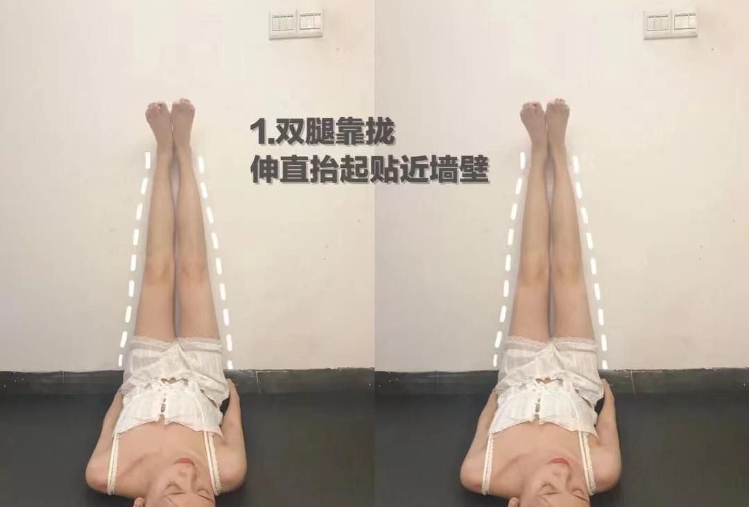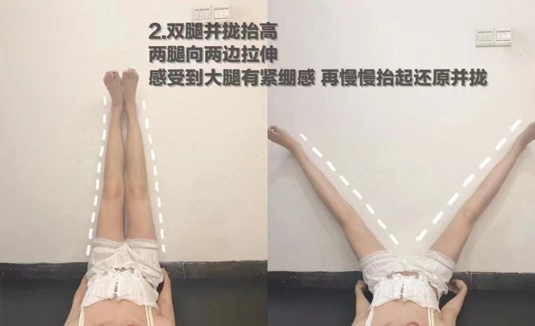 ◆两腿向两边拉伸感受到大腿有紧绷感再慢慢抬起还原并拢