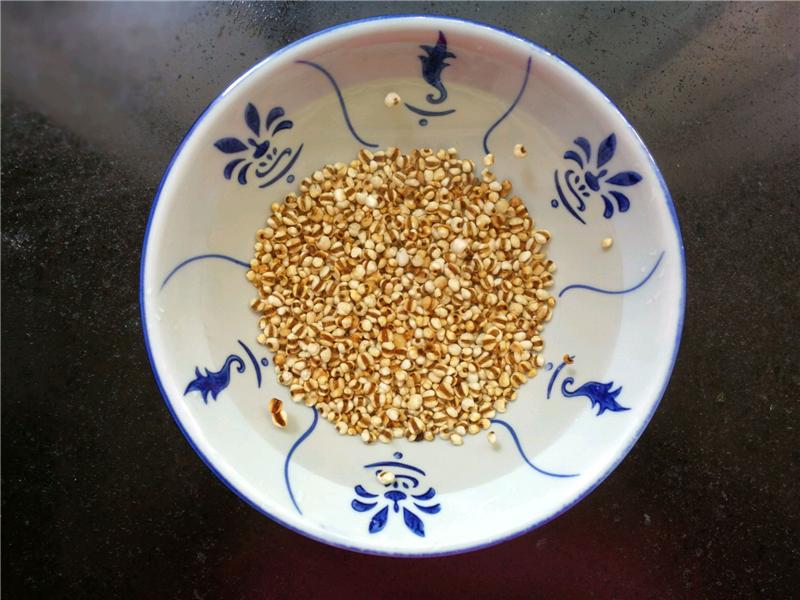 2、薏米清洗干净之后晾干或者用厨房的直接擦拭干净。将处理好的薏米放入锅中,开小火煸炒30分钟,直到炒出香味,薏米微微发黄,然后盛出放凉。薏米经过小火煸炒之后祛湿果才好,所以这一步一定不要忽略,大家也不要嫌麻烦,可以一次多炒一些,储存起来,什么时候用了直接拿出来用即可,方便又省事。