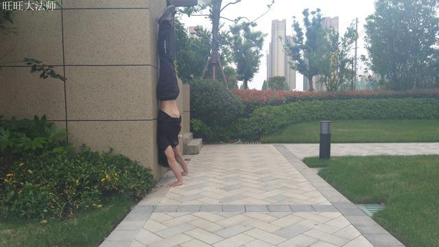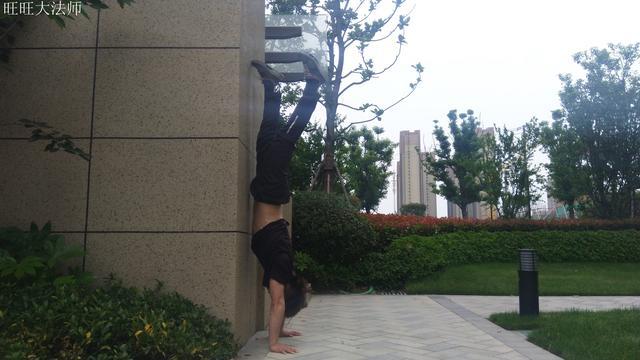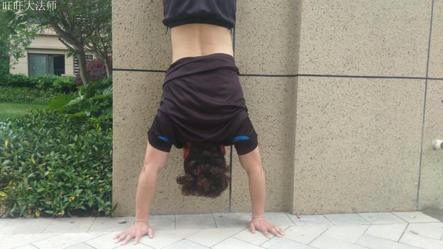 二、面墙倒立当我们能够维持贴墙倒立1分钟左右的时候,我们就可以上手面墙倒立,面墙倒立有两个好处,一个好处是我们可以通过这个动作练胆量,以后自由倒立就不怕摔。