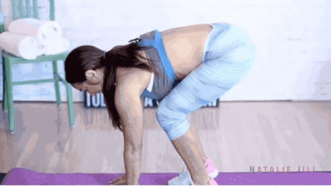 用双手支撑地面,反复踮脚尖。