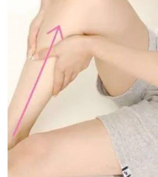 用手掌由下向上按摩整个腿部