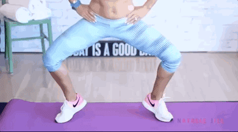 双腿分开,脚尖点地,连续深蹲。