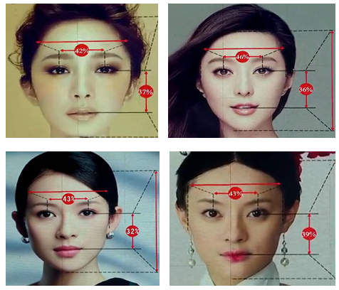 国际上通用的面容“黄金分割”——1:0.618即是检验这一比例的标准。我们所通称的东方美人脸:鹅蛋脸和瓜子脸就与这两大标准十分贴近,因此这两种脸型又被称为标准脸型,一般来说,理想脸型的长宽比应为34:21,面部紧致、五官立体、线条流畅,无论从任何一角度看,都毫无破绽。