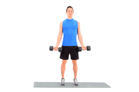 ③三角肌前束训练动作:站姿前平举
