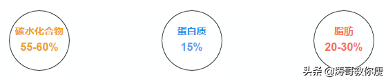 按照《中国居民膳食指南》,正常成年人,每天摄入三大宏量元素占比应该为碳水55-60%,蛋白质15%左右,脂肪20-30%。