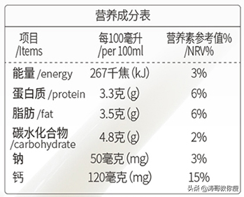 每天喝1000ml牛奶也不会胖吗?我们先来看看全脂牛奶的营养成分表。