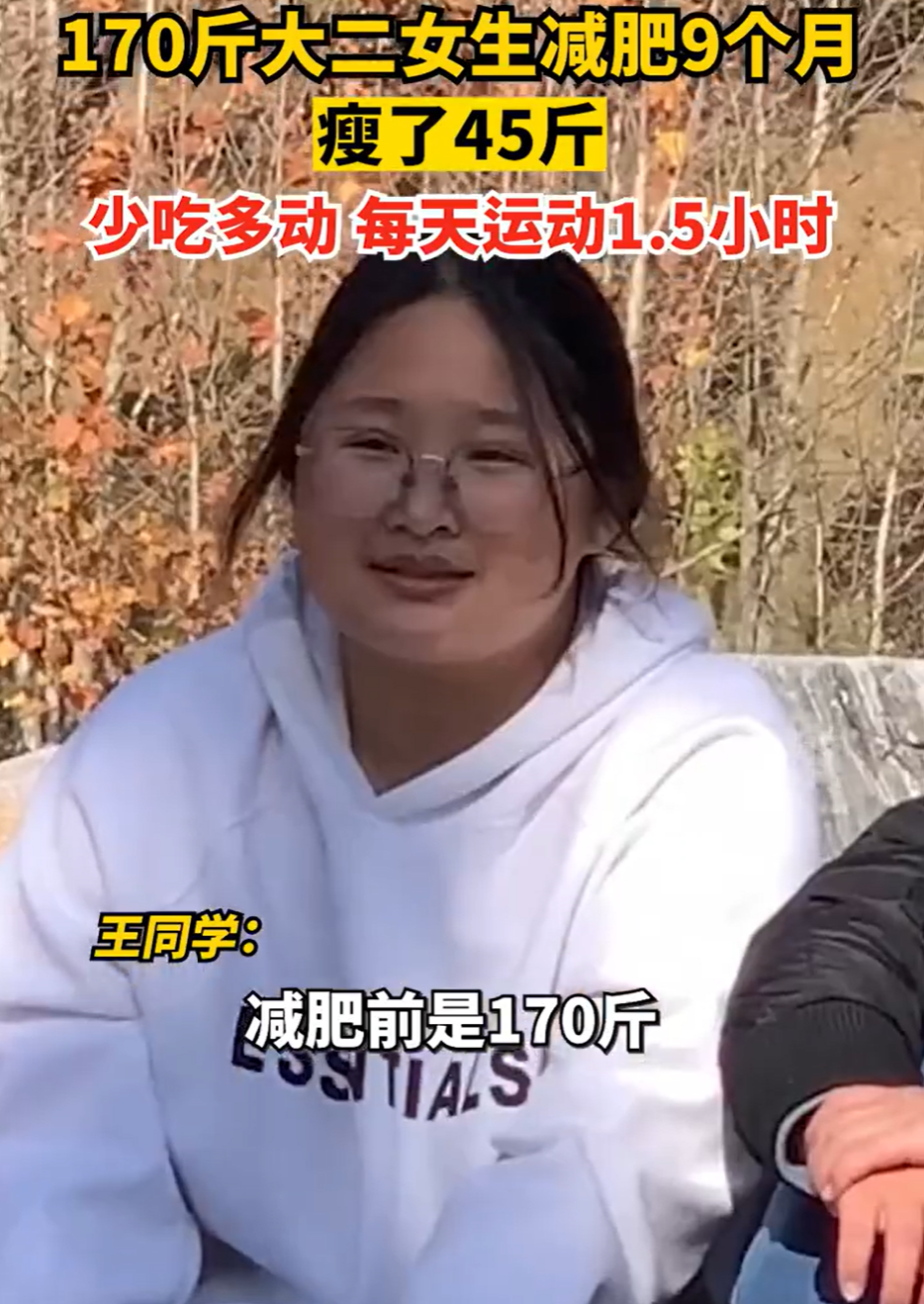 王同学表示,她减肥前170斤重,现在125斤。