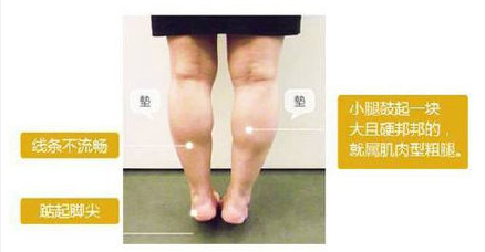 只有肌肉型的粗腿才适合注射。如果不确定自己适不适合,可以自己做个小测试。准备一个长身镜,垫起脚尖、脚跟离地,检查小腿腿部线条,若肌肉线条不流畅,某块肌肉用力产生大肌,就属于肌肉型小腿。