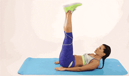 2、吐气收腹,双脚用力往中心交叉。停顿3-5秒,吸气回复姿势1。