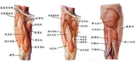 主要介绍大腿部分,因为主要肥胖的位置也就是这个地方。其中缝匠肌可以带动屈髋关节和膝关节,并且使已经屈曲的膝关节发生旋转。同时要使大腿的肌肉减少,或者进行塑形训练,就要股四头肌的训练。它可以控制髋关节和膝关节的运动,同时人体大且强的肌肉里面的一个成员也有股四头肌。
