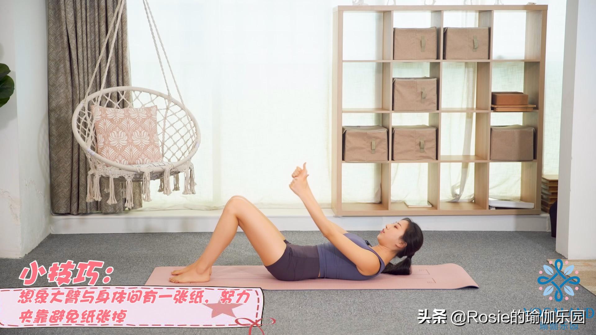 注意:环收腹部核心,保持下背部与地板之间有一个手掌的距离,保持脊柱伸展。