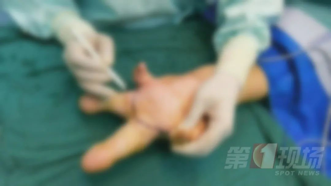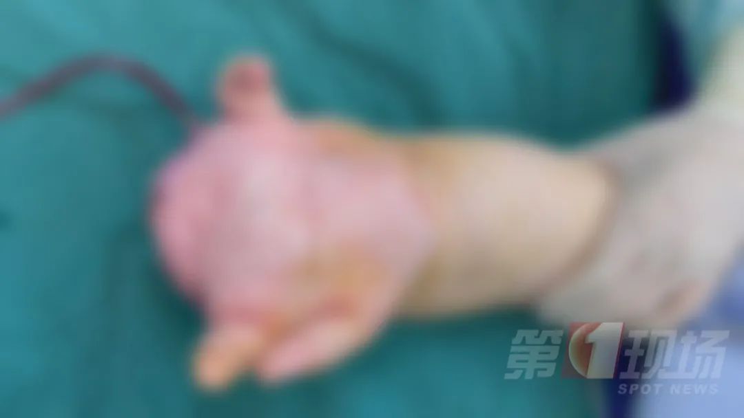 他这两个手指比一个胳膊还要大,对他的手功能产生了大的影响,相当于是一个负担。因为他拿不了东西 ,手要抬起来的时候,也不够力。