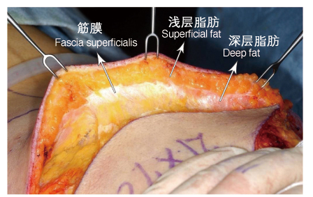 就是影响我们身材的脂肪层了,它被命名为浅筋膜系统(SFS),主要有两个层次:晕层和板层,晕层属于浅层脂肪,就在层下, 全身都有;板层属于深层脂肪,较晕层脂肪大而疏松,而且它只出现在某些特定区域,如髂腰区、腹部、大转子区、大腿上1/3的内侧面、上臀部等。