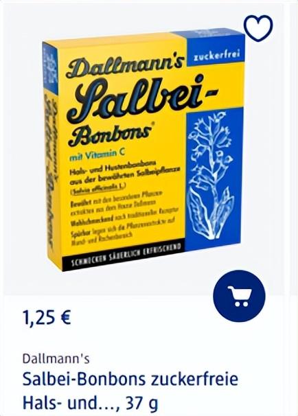 里面的植物提取物对口腔和咽喉部位的喉咙痛有舒缓作用。四颗达尔曼鼠尾草糖相当于维生素C的每日推荐剂量(60毫克/天)。吃起来酸酸的,大家可以买一盒备着。