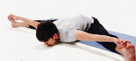 做法:坐姿状态,双腿向身体两侧大幅度打开,上身前倾下趴,双手放在地面上,用下巴顶住地面。如果头无法接触地面,尽量向下压。30秒一组,间歇30秒,共五组,