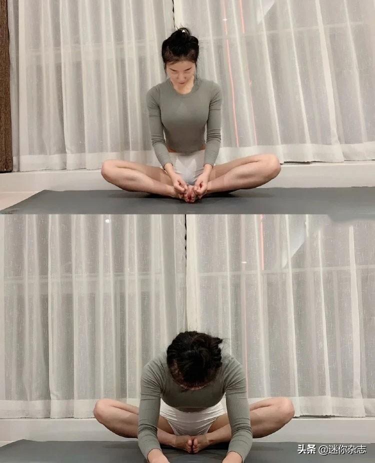 坐着瘦腿运动1:盘腿前弯运动次数:一组20个/共10组