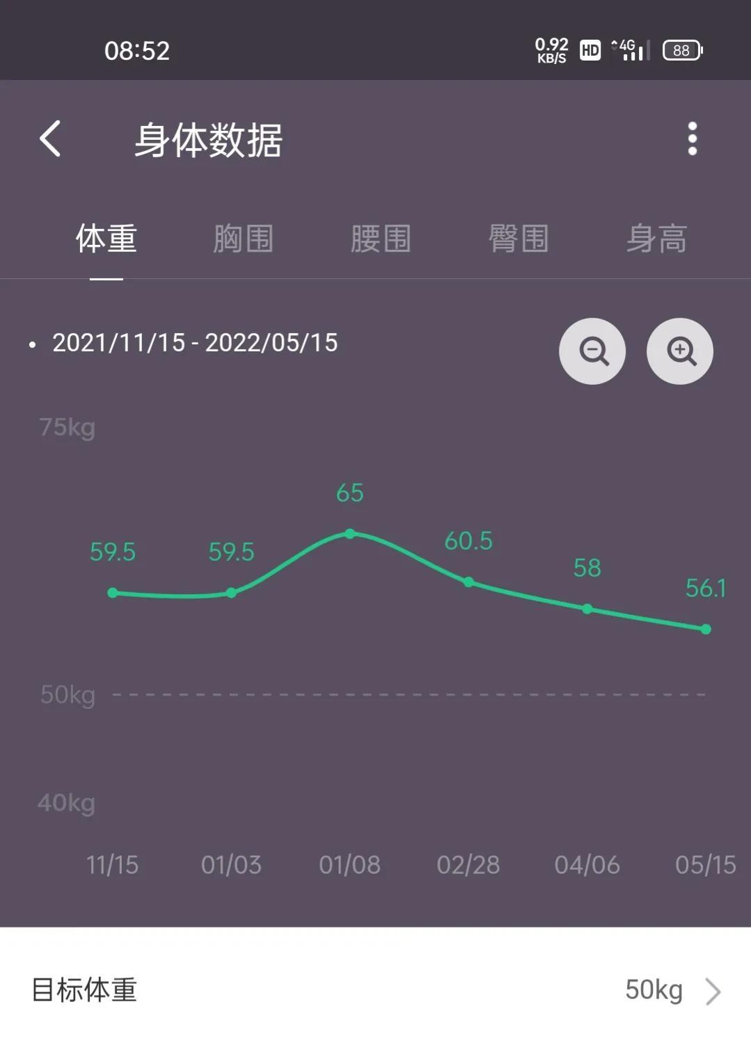 我的目标体重是50kg