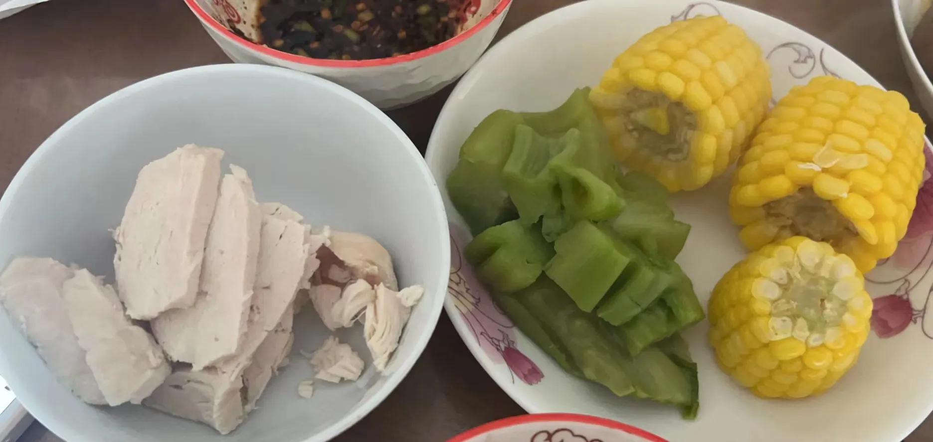 配上:各种鸡肉(鸡胸肉、鸡排、凉拌鸡、卤鸡)