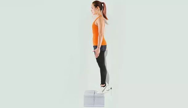 1.脚的前端置于高起的平台上,脚尽量往下压。