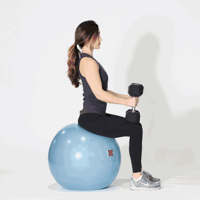 圆滚滚的健身球可以提高腿部保持平衡的难度,训练重心平衡感。训练中,肌肉一松一驰,加速燃脂,更能快速瘦腿。同时,手臂通过对于身体的支撑,使原本松弛的拜拜肉得到锻炼。