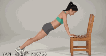 运动三:利用椅子强化核心与胸大肌、三头肌