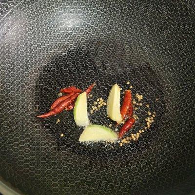1、锅中热油放入干辣椒和姜片爆香 放入洗干净的花甲肉 (花甲肉洗干净用力把水分抓出) 加入料酒翻炒大火翻炒1-2分钟