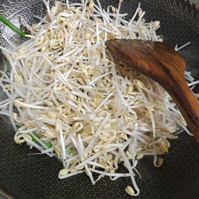 2、加入韭菜梗(不是叶子的部分) 和绿豆芽翻炒30″