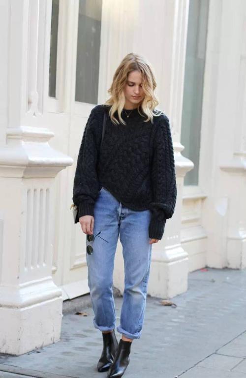 如果你个子不算高,你可以选择一些长版的毛衣搭配平底鞋或者的马丁靴,休闲活力又遮肉,当让你也可以是用H版型的衣服搭配处层次感一点大造型。